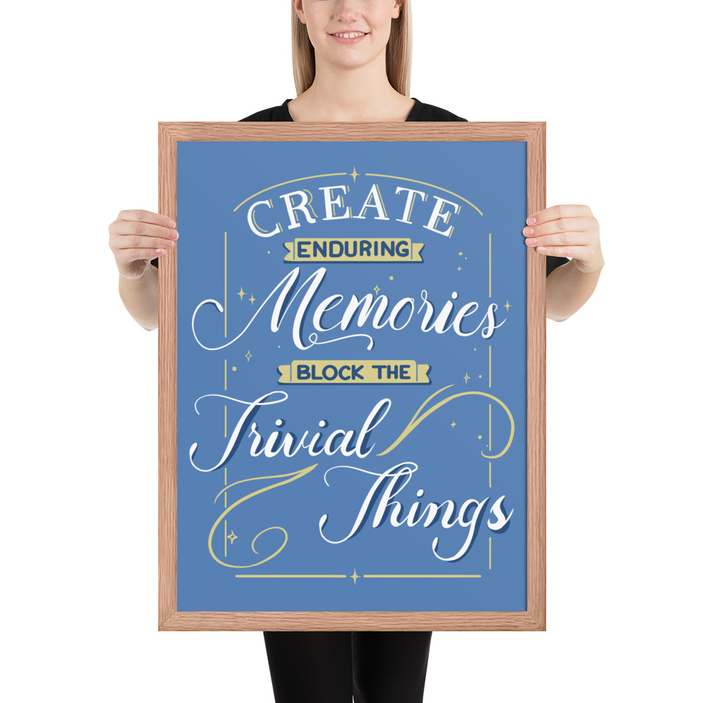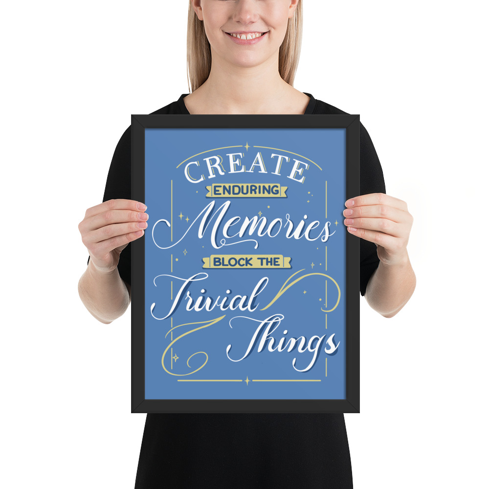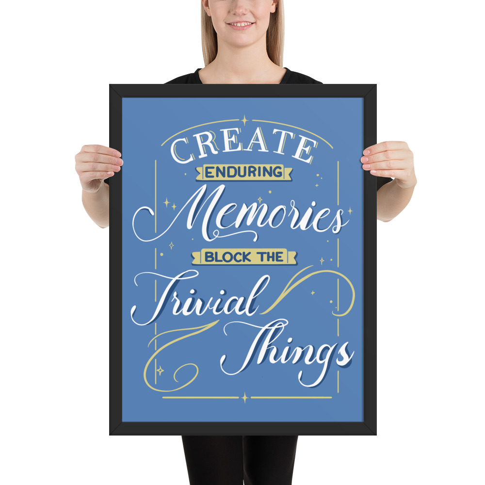 Get your “Create Enduring Memories, Block The Trivial Things” medium or large poster framed.